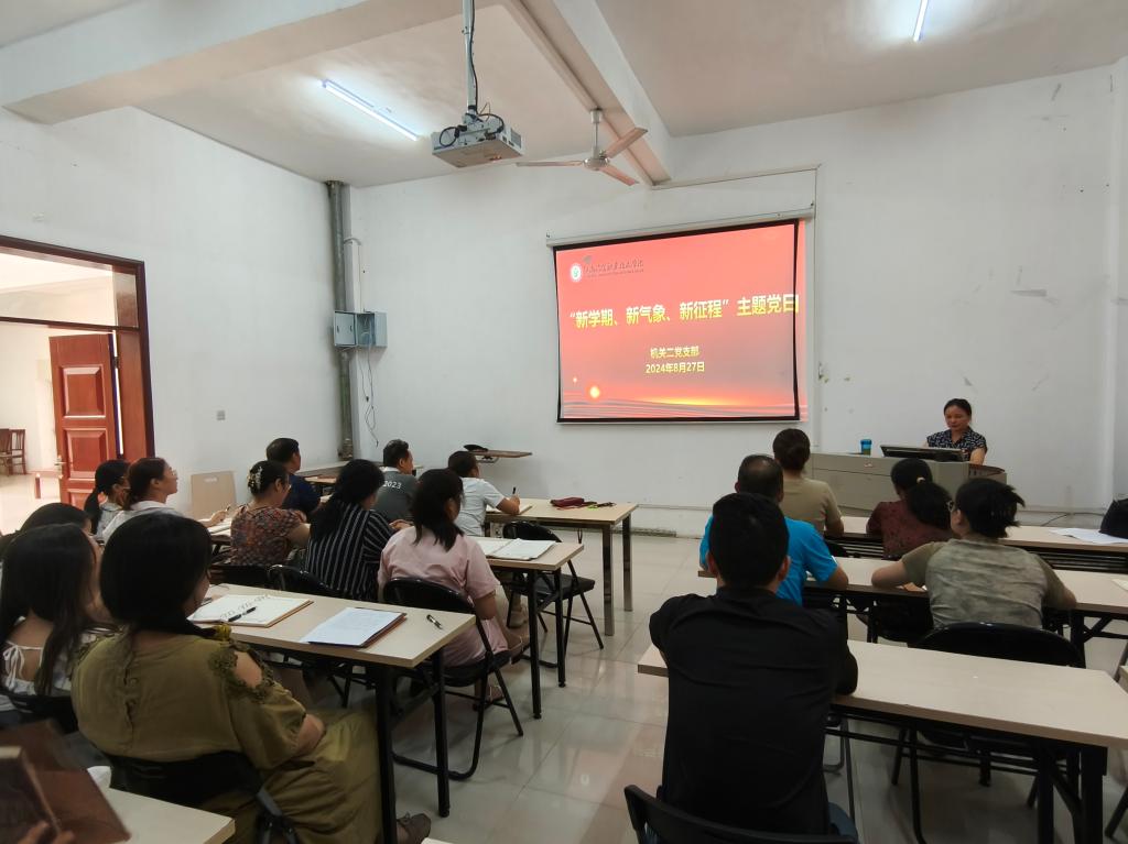 新学期伊始,机关二支部为迎接新学期的到来,展现支部教职工的良好风貌,充分发挥党员的先锋模范作用,开展了“新学期、新气象、新征程”主题党日活动。 8月27日,全体党员在双创中心会议室进行集中学习,学习党的二十届三中全会精神,并开展集中交党费活动。 接着,支部开展党员志愿服务活动,在接下来的几天里,党员分组打扫新生宿舍,擦拭桌椅、衣柜和门框,清理垃圾,让覆满灰尘的宿舍焕然一新