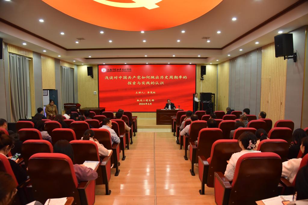 2024年3月26日下午,校党委副书记李茂旺,作为机关二支部的挂点院领导,与支部党员一起开展“3·23”警示教育活动,为支部全体党员上党课。党课的题目为“浅谈对中国共产党如何跳出历史周期率的探索与实践的认识”。 李茂旺从四个方面讲解:跳出治乱兴衰历史周期率的第一个答案;跳出治乱兴衰历史周期率的第二个答案;“两个答案”内在统一、相辅相成、相互促进;党的自我革命永远在路上。 党课结束后,大家纷纷表示,李书记...