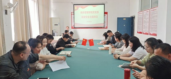 2023年4月15日是第八个全民国家安全教育日。为贯彻总体国家安全观,发挥党员模范带头作用,4月14日,在南校区第三教学大楼208室,商务管理学院党支部开展了国家安全主题党日活动。党支部副书记唐毓林主持活动,全体党员参加。首先,唐毓林带领全体党员学习了《总体国家安全观学习纲要》、习近平总书记关于国家安全的重要论述以及党的二十大报告关于国家安全工作的战略部署,并结合学院教学管理实际开展了研讨。党员们纷纷表示,...