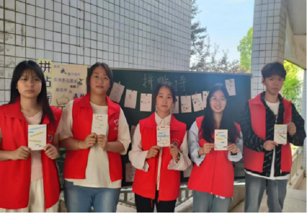 2025年4月18日,在第30个世界读书日到来之际,商务管理学院团总支在南校区新三教学楼阶梯教室旁,开展了一场别开生面的“诗帖巧拼,书香随行”拼贴诗活动。活动吸引了众多热爱文学的同学参与。 活动伊始,工作人员早早地在活动场地精心布置,形态各异的字词、短句片段整齐摆放,为同学们提供了丰富的创作素材。现场还准备了精美的卡纸、胶水、剪刀等工具,方便同学们进行拼贴创作。 下课铃响后,同学们陆续来到活动现场。工...