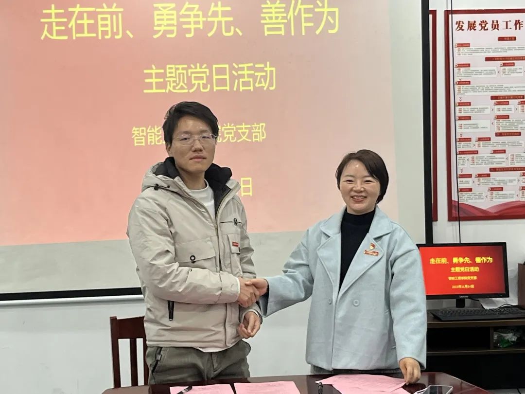 11月14日,智能工程学院在103党员活动室开展了“走在前、勇争先、善作为”主题党日活动。 首先由党支部书记吴钰琳领学了习近平总书记在江西考察时的重要讲话精神和《习近平在北京河北考察灾后恢复重建工作时强调 再接再厉抓好灾后恢复重建 确保广大人民群众安居乐业温暖过冬》文章。 活动第二项,党员代表围绕学习主题,结合自己的本职工作分享了学习心得体会。 最后,支部举行了师徒结对传薪火,坚守初心共成长活动。根据...