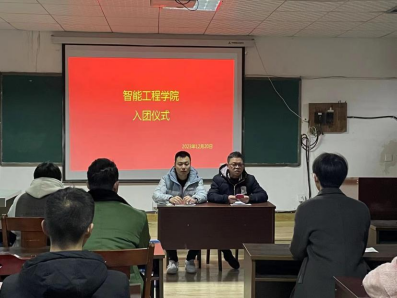2023年12月20日,智能工程学院团总支在北校区一教407举办入团仪式,2023年全体新发展团员参与。 分院副院长简金平出席了本次入团仪式。他为新发展团员代表佩戴了团徽并讲话。他对新团员们提出希望和要求,一是要积极履行团的权利和义务,积极参加团组织举办的活动;二是要以共青团员的标准严格要求自己,在同学中起带头作用;三是要努力成为一名优秀的共青团员,积极向党组织靠拢。
