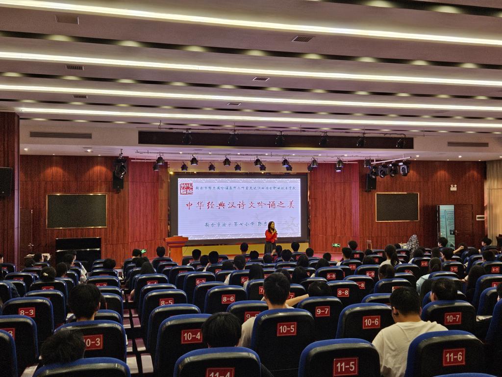 5月8日下午,在报告大厅,学校图书档案管理中心开展诗词吟诵活动。活动邀请新余市陈忠英吟诵名师工作室主创陈忠英老师主讲,主题为“中华经典汉诗文吟诵之美”。两百余名师生参与。 活动中,陈老师从吟诵历史、吟诵作用等方面进行了阐述,重点介绍了“一本九法”的吟诵规则,对“依字行腔、依义行调、入短韵长、平长仄短、平低仄高”等吟诵方法一一进行详尽解读。 深入浅出地讲解,辅之以视频、音频和示范吟诵,陈老师利用...