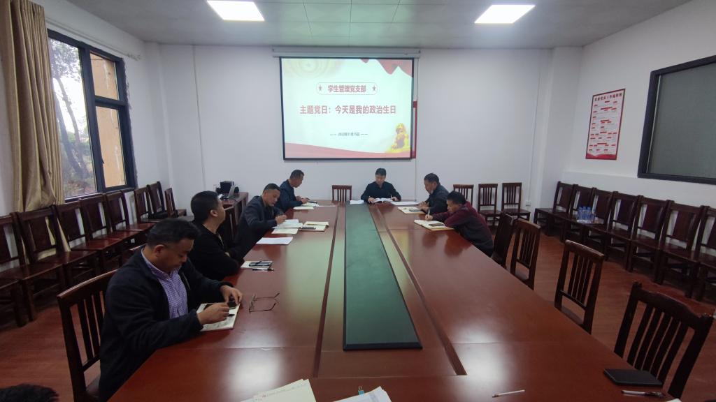 11月15日下午,学生管理党支部开展了主题党日活动。活动分为两个部分,一是为吕文涛同志庆祝“政治生日”。二是开展党史知识竞赛。活动开始,由吕文涛同志畅谈入党初心、分享党组织对自己的培养、对党的追求的切身感受,让支部全体党员、入党积极分子都大受鼓舞。随后,党支部书记邓灵波带领支部党员重温入党誓词,为过“政治生日”的党员送生日的祝福。他并希望支部全体党员,要牢记身为中国共产党员的光荣身份,牢记自己对党...