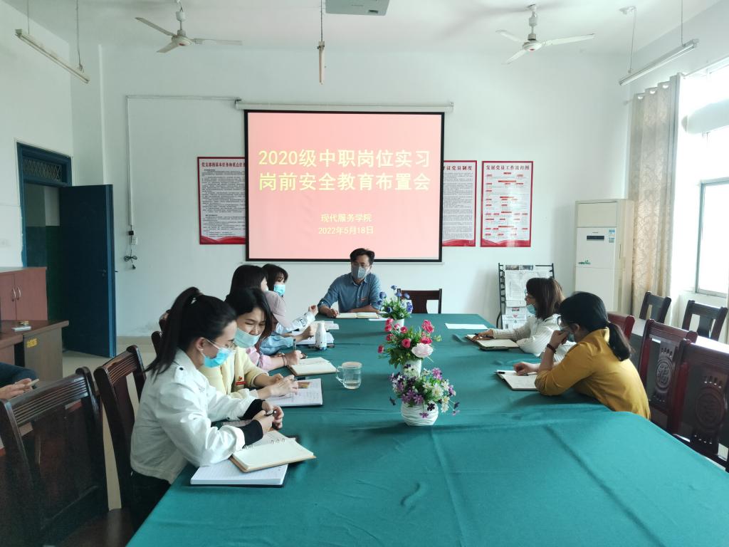 05-23/2022现代服务学院召开2020级中职生岗位实习工作及岗前安全教育布置会