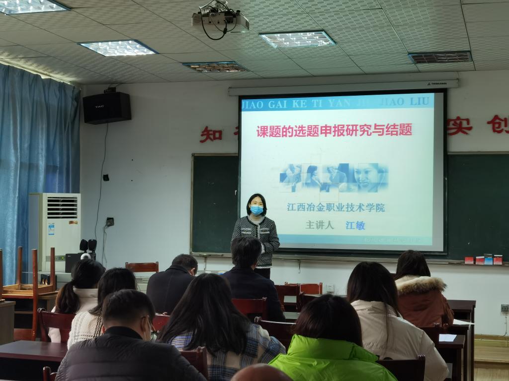 【现代服务学院江敏报道】2022年12月13日下午,现代服务学院江敏老师在北校区自强楼503教室开展了一场“科研项目申报培训”的专题讲座。现代服务学院全体教师到场聆听。江敏首先介绍了近几年来江西省教育厅教学改革研究课题的申请和立项的总体情况。然后,她从什么是课题、课题申报、课题申报的具体流程、课题申报的成功要旨以及课题申报书的撰写示意等几个方面进行了详细介绍和深入浅出的讲解。结合自己多年来的课题研究经验,...