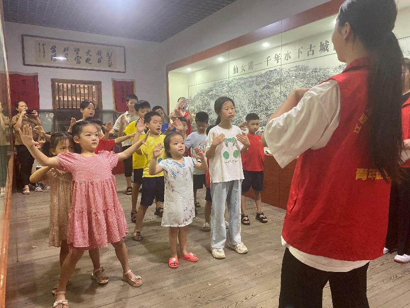 【现代服务学院赵令弘报道】7月16日,现代服务学院“爱润童心,为爱护航”三下乡社会实践团队来到仙女湖区昌田村开展“以舞相牵,为爱相伴”活动,促进民间传统舞蹈技艺的传承与发展。在初心馆的历史文化展厅内,志愿者通过介绍当地非遗戏剧文化,引发孩子们对传统文化的认同感。每当讲到自己认识的戏种或是戏服,孩子们就会兴高采烈地介绍自己的所见所闻。随后,志愿者们开展了舞蹈小课堂。在课堂上,孩子们学习了我国传统民...