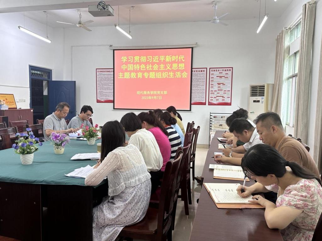 【现代服务学院廖斐报道】2023年9月7日,在北校区三教党员活动室,现代服务学院党支部召开了学习贯彻习近平新时代中国特色社会主义思想主题教育专题组织生活会。会议由党支部书记欧阳小缨主持,校党委委员、组织部长曹春宜及组织部李东煜到会督导。本次会议分为两个阶段。第一阶段,由欧阳小缨代表现代服务学院党支部委员会通报2022年度组织生活会的整改落实情况;汇报本次主题教育专题组织生活会前期准备工作及检视问题清单。...