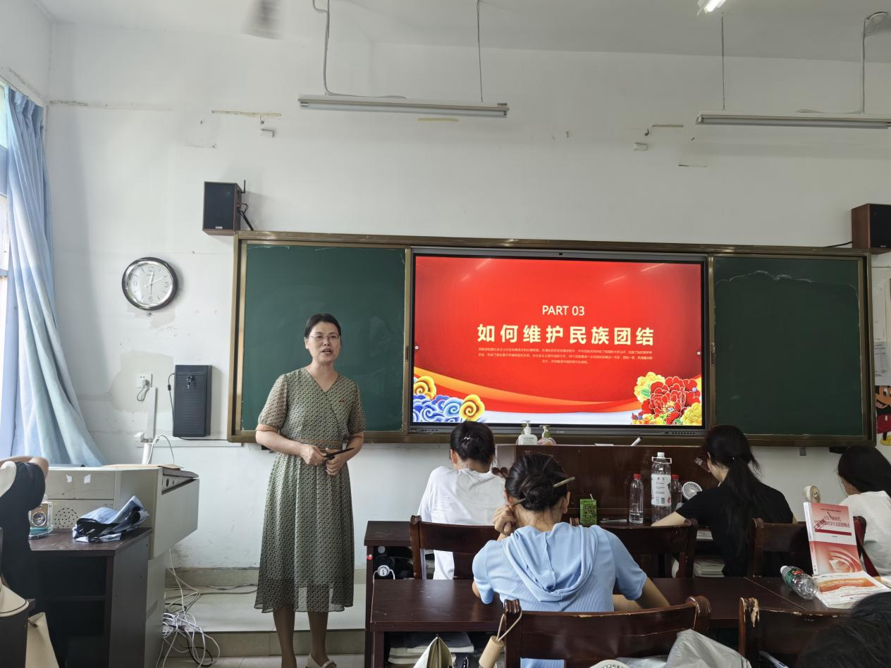【现代服务学院周明霞报道】9月19日下午,现代服务学院党支部开展了党员红旗岗志愿服务活动。该活动的主要内容是党员到挂点班级组织召开民族团结的主题班会。在主题班会课上,党员教师带着满腔的热情,通过多种形式,引导同学们了解民族团结的重要意义,培养学生的爱党爱国情怀和团结意识。活动介绍了不同民族的文化和传统,促进同学们对多元文化的尊重和理解。活动还开展了一系列互动游戏,进行了小组讨论,提高了同学们对民族...