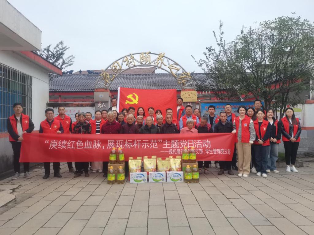 【现代服务学院廖斐报道】重阳将至,为弘扬“尊老、敬老、爱老”的传统美德,10月20日,现代服务学院党支部、学生管理党支部联合开展“庚续红色血脉,展现标杆示范”主题党日活动之“我为群众办实事”活动,走访慰问珠山镇花田村颐养之家的老人们,为老人们送去了关爱和祝福,并为他们送上米、油、牛奶等慰问品,让他们切身感受到真挚的温暖。“重阳节马上要到了,我们来看望您,祝您节日快乐,健康长寿。”“非常感谢你们对我...