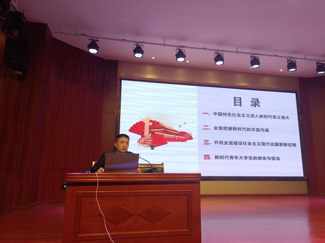 【现代服务学院徐卉报道】近日,现代服务学院“青马工程”大学生骨干培训班第四讲在图书馆报告大厅举行。现代服务学院副院长胡小平主讲,青马班全体学员参加。胡小平从“中国特色社会主义进入新时代意义重大”“全面把握新时代的丰富内涵”“开启全面建设社会主义现代化国家新征程”“新时代青年大学生的使命与担当”四个方面讲述《启新时代,赴新征程》。他指出,新时代青年大学生生逢强国时代,肩负强国使命,同学们从现在做...