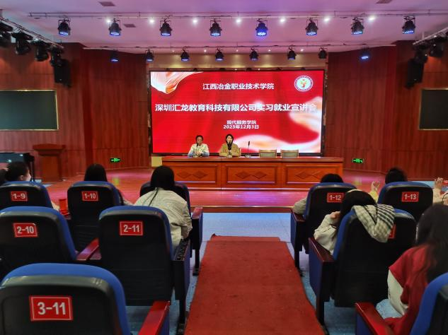 【现代服务学院周明霞报道】12月3日下午,现代服务学院在图书馆二楼报告大厅举办2024届毕业生实习就业专场招聘会。招聘会由分院副院长江敏主持,毕业班辅导员及分院21级全体毕业生参加。 招聘会引进了深圳雏鹰教育集团、上海奈尔宝家庭教育中心、深圳汇龙教育科技有限公司、苏州亨通凯莱度假酒店等优质企业参与。来校企业招聘负责人进行了宣讲,介绍了企业的岗位职责、企业平台、个人职业发展、薪酬待遇等多方面的情况,并与学...