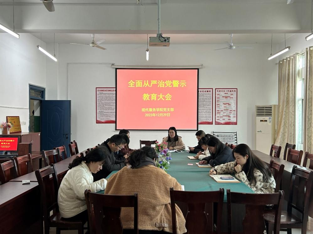 12-30/2023现代服务学院党支部召开2023年全面从严治党警示教育大会