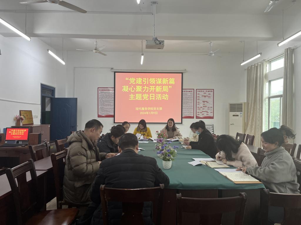 【现代服务学院廖斐报道】1月9日,现代服务学院党支部在北校区三教党员活动室开展“党建引领谋新篇 凝心聚力开新局”主题党日活动。本次活动由党支部书记欧阳小缨主持,全体党员参加。 活动分为三个阶段。第一阶段,由支委成员领学《中国共产党章程》《中国共产党支部工作条例(试行)》《中国共产党党员教育管理工作条例》等文件。 第二阶段,各位党员对照党员标准,对全年工作进行个人总结,对自己承诺践诺完成情况进行个人...