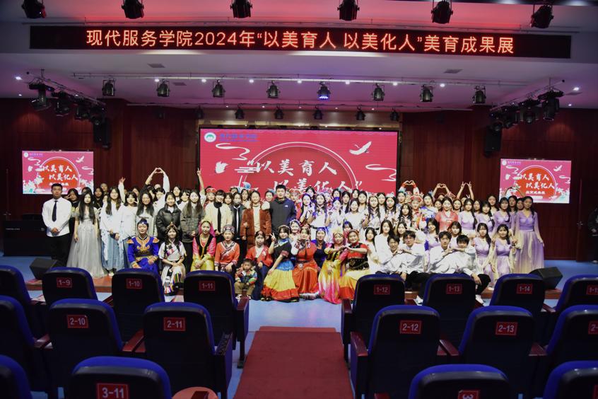 【现代服务学院徐卉报道】2024年1月2日,在图书馆报告大厅,现代服务学院举办了2024年“以美育人 以美化人”美育成果展。 现代服务学院副院长江敏为成果展致开幕词。她指出,美育在培养学生全面发展方面非常重要。她鼓励学生们,要继续在艺术的道路上积极探索。她表示,这些舞蹈表演不仅展示了学生的艺术才华,也是对教师教学成果的一种展现。 活动现场热闹非凡,同学们欣赏着精彩的节目,感受着艺术与美的熏陶。幕布剧《青春...