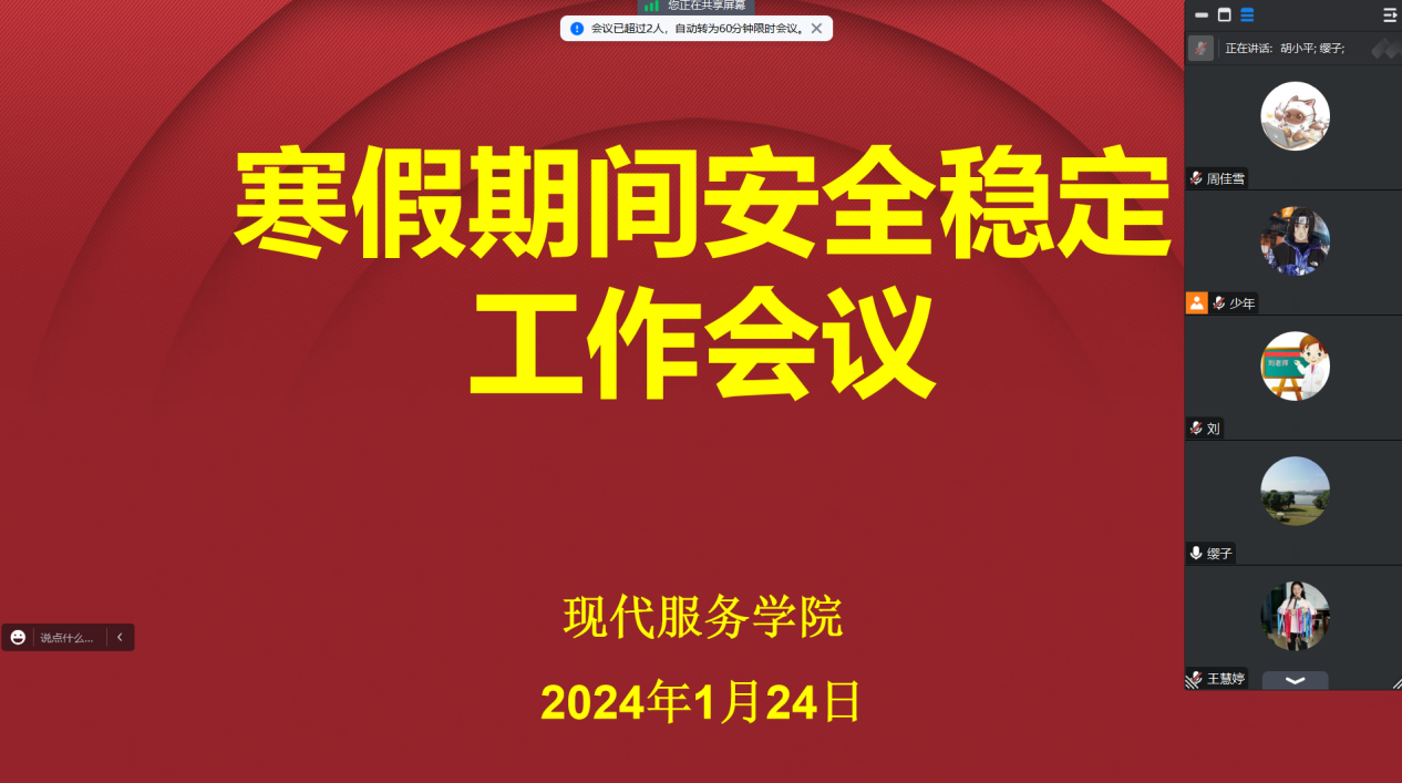 01-25/2024现代服务学院召开寒假期间安全稳定工作会
