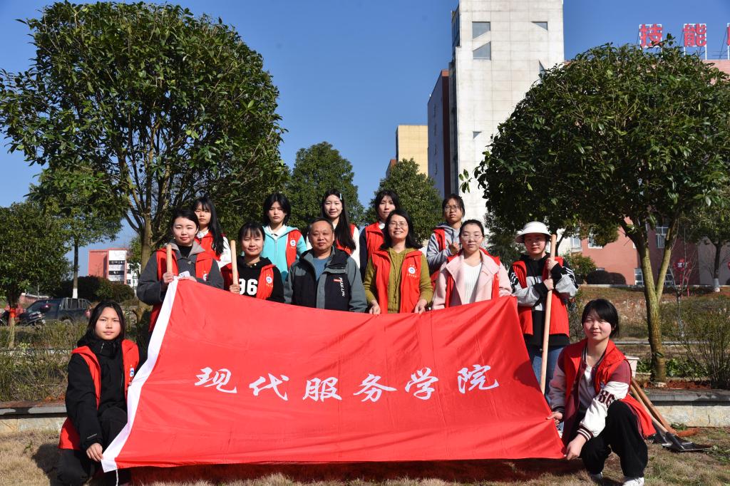 【现代服务学院周明霞报道】春日的阳光洒在校园,一片繁忙有序的景象呈现眼前。3月12日,植树节期间,现代服务学院青年先锋队开展了主题为“‘雷锋月’遇上植树节,植树添绿正当时”的活动,弘扬雷锋精神,倡导环保理念。 分院党支部书记欧阳小缨参加活动并做动员。她鼓励志愿者们,要知行合一,将绿色环保理念转化为实际行动,为地球母亲增添一抹绿色。 随后,同学们忙碌起来,她们分组合作,有的负责挖坑,有的负责搬运树苗...