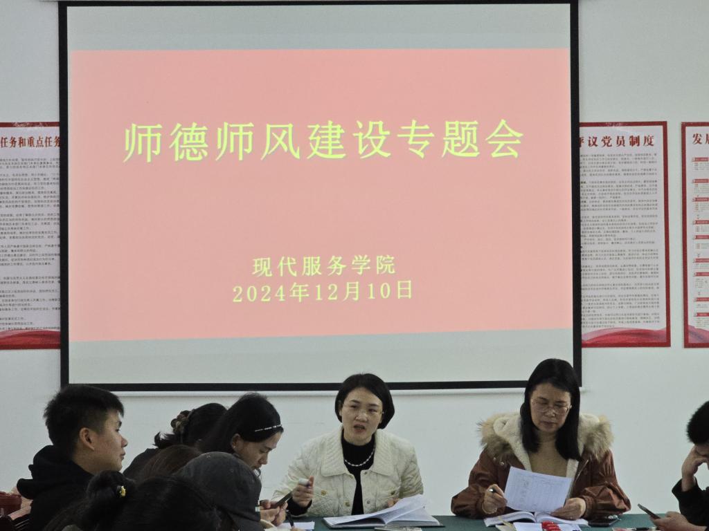 2024年12月10日,在北校区自强楼党员活动室,现代服务学院召开了思想政治工作专题会暨师德师风建设专题会。会议旨在进一步加强学院思想政治工作,提升教师队伍的师德师风水平,为培养德智体美劳全面发展的社会主义建设者和接班人提供坚强保障。 会上,分院党支部书记欧阳小缨领学了《违反中央八项规定精神典型案例(十三)、(十四)》。副院长江敏领学了习近平总书记《论教育》中的一文《推动高校思想政治工作改革创新》。 ...