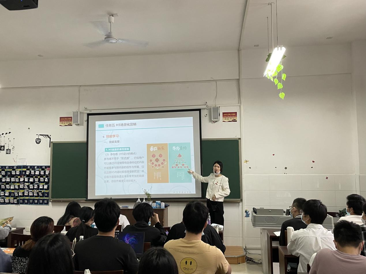 【现代服务学院万文英报道】2022年4月13日上午9点,现代服务学院党员教师江敏在新二教实验楼302教室上了一次研讨型公开课。电子商务教研室的部分教师到现场观摩学习。江敏老师以《H5场景化营销》为题,从什么是H5、H5的设计流程、营销时的注意事项、经典H5案例分享这四大模块进行深入分析,用丰富的案例牢牢抓住学生的心;同时充分发挥网络教学平台的功能,运用信息化教学手段让学生进行课前预习和课中互动,课堂上有效运用分组...