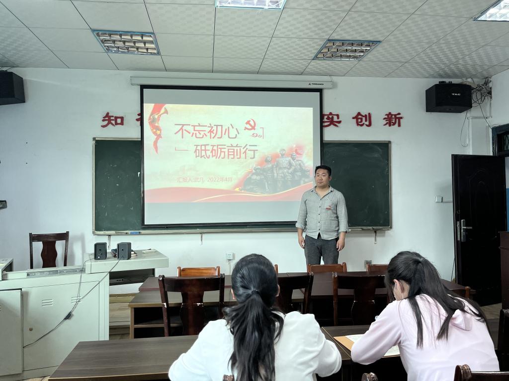 【现代服务学院廖斐报道】 4月13日,现代服务学院党支部在党员活动室开展了以“不忘初心 砥砺前行”为题的党课,党课由武凡老师主讲,全体党员教师参加。本次党课聚焦新时代爱国主义教育,从中国共产党人的初心和使命、明确新时代教育工作者的责任和担当展开。首先,明确人民对美好生活的向往就是共产党人的奋斗目标,“两个一百年”是中国梦的落地的目标规划。其次,武老师讲解“明确新时代教育工作者的初心和使命”。强调“...
