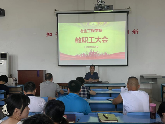 2022年8月25日下午,冶金工程学院在新一教301教室召开新学期教职工大会。会议由分院院长曾伟勇主持,党支部副书记、副院长万美茜出席,全体教职工参加。 曾伟勇从安全教育、防暑提醒、学籍工作、学生竞赛、学生实习等方面总结了假期工作,并对新学期开学的各项工作进行详细的安排和部署。他要求大家,要以积极向上的状态投入到新学期的工作中来,做好学生开学报到准备工作,积极营造良好的开学氛围。 万美茜传达了《关于...