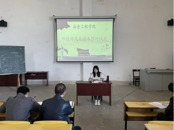 2022年3月8日下午,冶金工程学院在新一教阶梯教室召开师德师风教育专题会。会上,举行了隆重的师德师风承诺书签字仪式。会议由分院党支部副书记、副院长万美茜主持,副院长曾伟勇出席,全体教师参加。 会上,万美茜组织全体教师认真学习了师德师风建设有关文件。她要求大家,要坚定正确的政治方向,自觉爱国守法,自觉传播优秀文化;要潜心教书育人,关心关爱学生,坚持以身作则,做到言行雅正、公平诚信、廉洁自律,为学生...