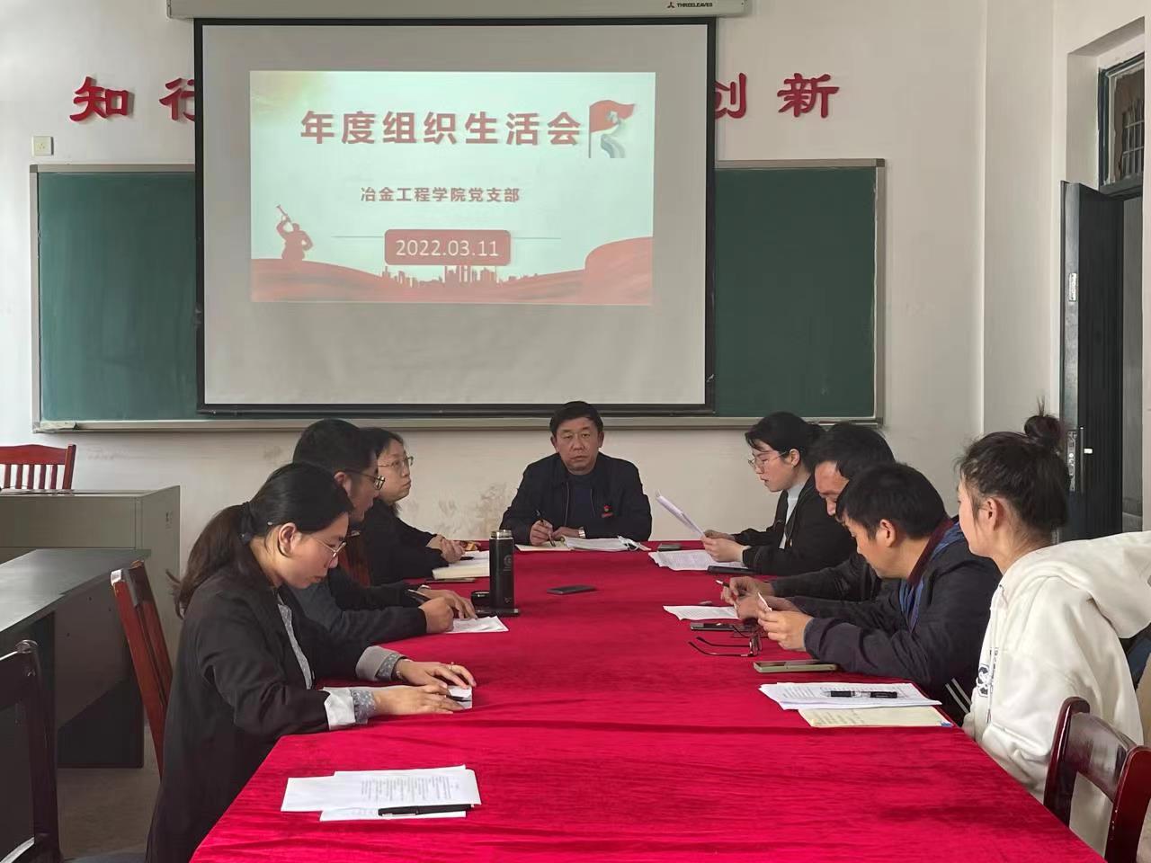 2022年3月11日下午,在新一教208党员活动室,冶金工程学院召开2021年度党支部组织生活会。会议由分院党支部副书记万美茜主持,学院挂点领导谢向莹出席会议,学院党委组织部副部长邬金凤应邀参会。 会前,根据基层党组织组织生活会和开展民主评议党员的工作提示,支部组织党员扎实开展了学习研讨、征求意见、谈心谈话、查摆问题、撰写检视材料等工作。 会上,万美茜代表支部委员会述职,报告党支部一年来的工作以及查摆问...