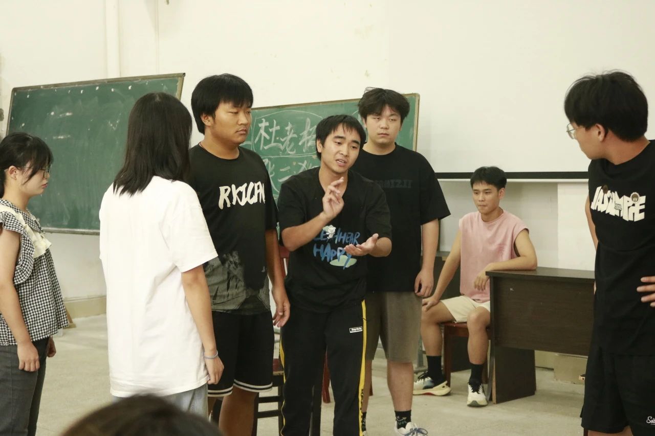 2024年9月27日下午,在新一教学楼的阶梯教室,冶金工程学院举办了一场红色剧本杀演员培训活动。培训特别邀请了九龙山乡的乡干部作为嘉宾指导。 在培训课程中,同学们在指导老师的面前进行了紧张而认真的排演。每一次表演结束后,指导老师都耐心细致地指出同学们的问题,并鼓励他们不断改进,力求将最真实、最完美的演出呈现给观众。尽管天气炎热,但同学们的热情丝毫未减,他们反复推敲、不断询问,只为在最终的舞台上绽放光...