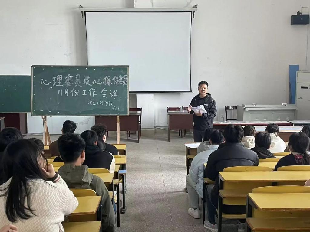 2024年11月21日中午,在新一教学楼阶梯教室,冶金工程学院召开了11月份心理委员及心理保健员工作会议。会议由占瑜老师主持。 会上,占瑜阐述了班级心理委员设立的重要性,明确了心理委员的工作职责、角色定位,布置了工作任务。他要求,各班心理委员要不断学习心理健康教育的新知识,提升个人心理健康素养,增强助人能力,充分发挥朋辈间的积极影响