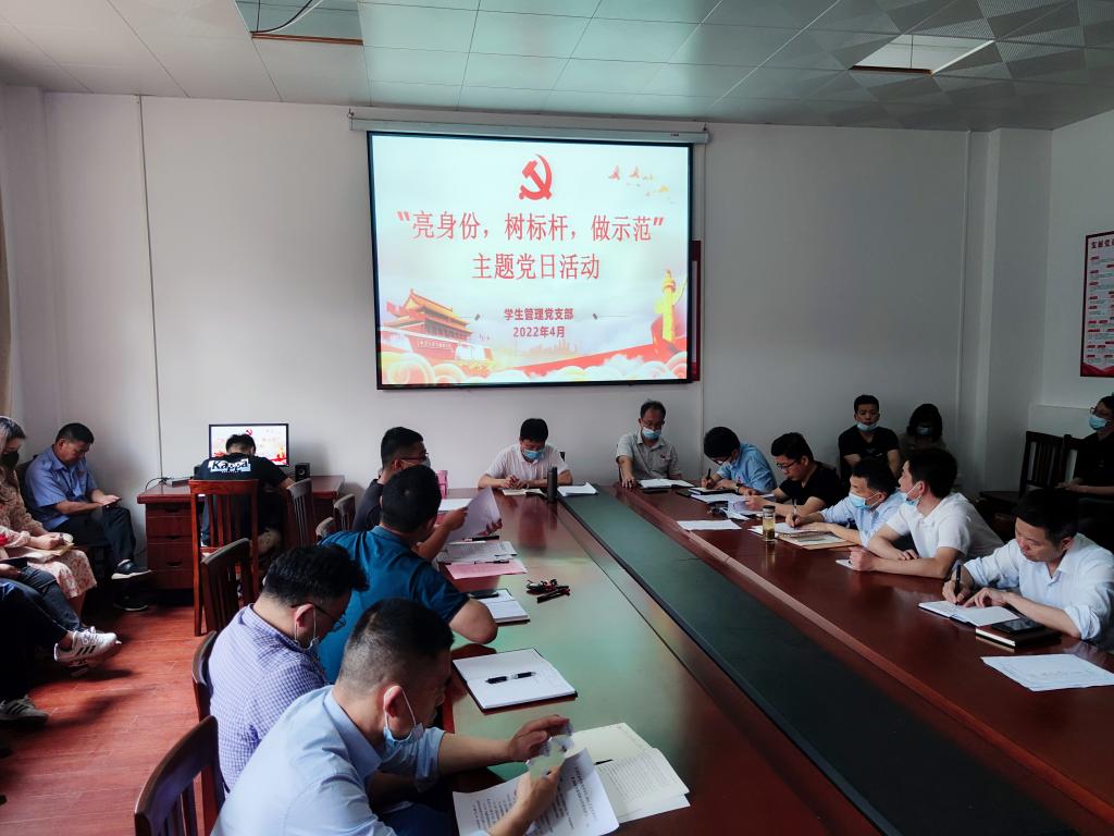 04-26/2022学生管理党支部开展“亮身份、树标杆、做示范”主题党日活动