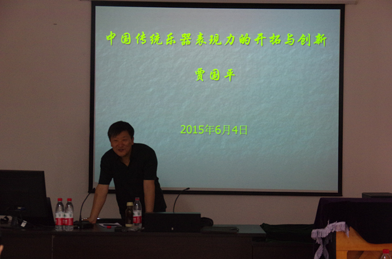 2015年6月4日,著名作曲家,中央欧冠官方网站博士生导师、中央欧冠官方网站音乐学研究所所长贾国平教授在我院学术报告厅举办了“中国传统乐器艺术表现力的开拓与创新”学术讲座,欧冠官方网站理论作曲系的师生们在此次讲座上分享了贾国平教授音乐创作上的新成果,并且积极的和贾国平教授进行了交流探讨。