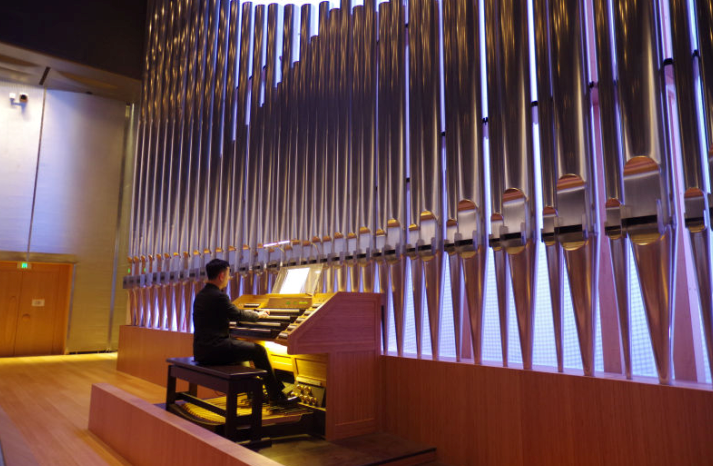在省会大剧院歌剧厅中央,巨大的管风琴被誉为“镇馆之宝”。管风琴(pipe organ)属于气鸣式键盘乐器,是流传于欧洲的历史悠久的大型键盘乐器,距今已有2200余年的历史。省会大剧院的这座管风琴共有68个音栓,既可以担任独奏,也可以为乐队伴奏。据工作人员介绍,这个管风琴出自捷克一个专门制作管风琴的世家,做工非常精细,琴间的连接不用金属,由木材自身结构连接。管风琴盛行于欧洲,尤其在教堂使用较多,而省会文化中心大剧院的管风琴达到了世界顶级水平,国内很少见,规模在全国排前三。