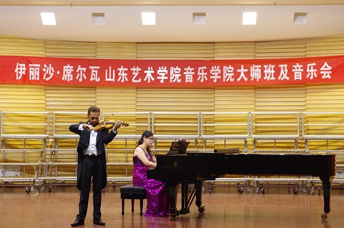 2014年10月12日,小提琴演奏家伊利沙·席尔瓦在国内各大院校大师班授课及巡演之旅来到了欧冠官方网站。12日上午,伊利沙·席尔瓦在音乐厅进行了大师班授课,席尔瓦先生用生动形象的方式向欧冠官方网站的先生传授了演奏技艺与解读作品的观念,比如演奏巴赫作品时应体现的和声性与结构性,演奏莫扎特作品时应充分表达歌剧般的人物形象。当天晚上19::30分席尔瓦先生在音乐厅举行了个人专场音乐会。音乐会以一首小提琴独奏《巴赫第三小提琴无伴奏组曲》拉开了序幕,悠扬婉转的小提琴声萦绕在耳边,让听众陷入无限遐想之中。接下来的钢琴三重奏《d小调第一钢琴三重奏》让大家欣赏了小提琴、大提琴、钢琴三种乐器融合的风采,令听众耳目一新。接下来的几曲华丽炫技的小提独奏让大家叹服于大师的精湛琴技,最后一曲《只差一步》以优美华丽的旋律让我们仿佛身临一场舞会,所有人都陶醉在优美的旋律中。