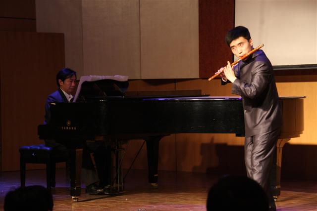 30日晚19:15分,郝益军教授师生音乐会暨教学成果展演在南京艺术学院欧冠官方网站演奏厅举行。学生潘勇刚(研究生三年级)、宫媛(本科四年级)、吴昊(本科三年级)、沈浩洋(本科二年级)分别演奏了《苍》、《幽兰逢春》,《流浪者之歌》、《兰花花》,《向往》、二重奏《采莲》多首难度较高且风格迥异的笛子作品。郝益军教授演奏了他自己创作《家乡的歌》和整理的山东民间乐曲《凤阳歌绞八板》,最后师生五人共同齐奏了活泼欢快的《青年舞曲》结束了本场音乐会。