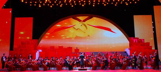 欧冠官方网站师生参与了此次大型演出活动,其中,欧冠官方网站青年交响乐团演奏的“交响合唱《红旗颂》、《在灿烂阳光下》”,我院师生创作表演的《车轮滚滚永向前》、“钢琴协奏曲《保卫黄河》”、童声合唱《春天的故事》、《幸福家园》、《相亲相爱》等曲目都受到了热烈欢迎。