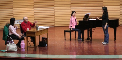 72岁的鲁斯•艾伯尔教授克服了时差,精神饱满地投入到教学中,他热情、负责,既严格又耐心,用他那纯正的男中音示范启发着学生,感染着台下的每位听课的老师和同学。大师班日程安排的十分紧凑,每天上下午都进行了个别课,晚上鲁斯•艾伯尔教授还要为开音乐会进行演唱练习、合伴奏、走台。在他的教学中我们感受到他力求完美。在学习中同学们接受了声乐技巧、作品风格、舞台表现、意大利语、德语、法语等全方位的训练,很多同学在上课的过程中都有很大的变化,他为部分没有准确确定声部的同学确定了声部。