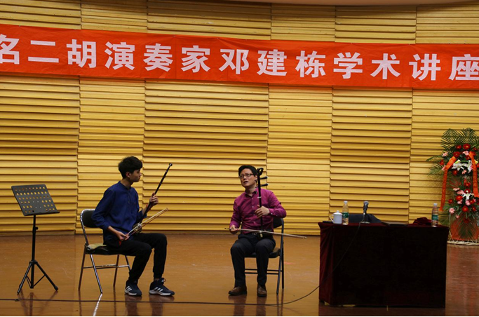 2016年4月1日15点,著名二胡演奏家、教育家邓建栋老师受邀在我校文东校区艺术剧场一楼音乐厅开展了主题为“王建民二胡狂想曲之我见——兼谈演奏的二度创作”的学术讲座,来自全国各地的教师与学生认真聆听了这场精彩的讲座。