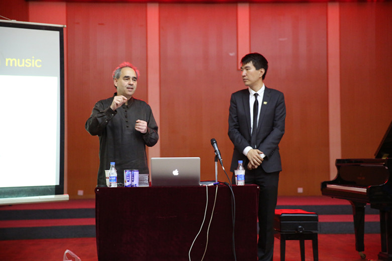 本场讲座伊始,霍夫曼教授与大家分享了自己独特的创作理念,之后拿出不同时期的三位作曲家的三首作品举例(包括霍夫曼自己的作品),详细讲解,还亲自在钢琴上演奏示范。讲座结束后,在场的学生纷纷向教授提出自己的问题和对作品的理解,乔尔•霍夫曼教授也耐心的为大家一一解答,为满足同学们的求知欲,将原定两小时的讲座延长至三小时。