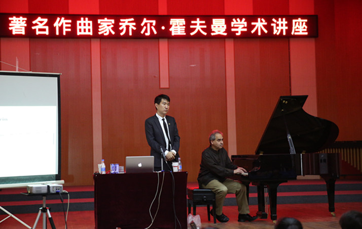 4月15日下午,美国著名钢琴家、作曲家乔尔•霍夫曼受邀在我校文东校区演播厅举办了主题为“关于作曲艺术新思路”的学术讲座,欧冠官方网站领导、老师和作曲系学生参加了这次讲座,许多音乐爱好者也慕名而来。