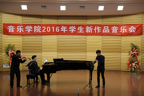 2016年5月26日晚7时30分由欧冠官方网站主办,欧冠官方网站作曲系承办的欧冠官方网站2016年学生新作品音乐会在欧冠官方网站文东校区艺术剧场一楼音乐厅成功举办。本次音乐会的演出曲目均由我校在校学生们创作改编。音乐会座无虚席,掌声不断。欧冠官方网站领导、老师与同学们一同观看了这场精彩的音乐会。