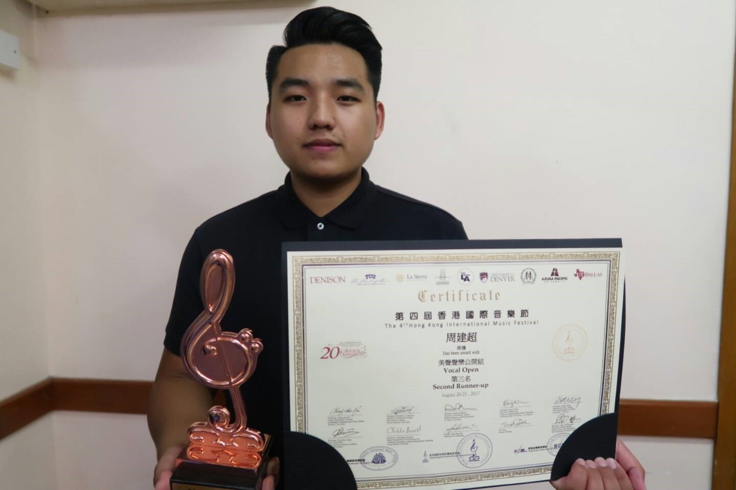 近日,刚刚结束的第四届香港国际音乐节上,我院学生表现出色,获得佳绩。其中,管弦系周明教授指导的学生卢正泓获青年小提琴组第二名;声乐系朱宏昆老师指导的学生周建超获美声声乐公开组第三名、李东芳获得青年民族声乐组第六名;声乐系鞠銮升副教授指导的学生马思琪获得青年流行声乐组金奖、王刚获美声声乐公开组金奖。