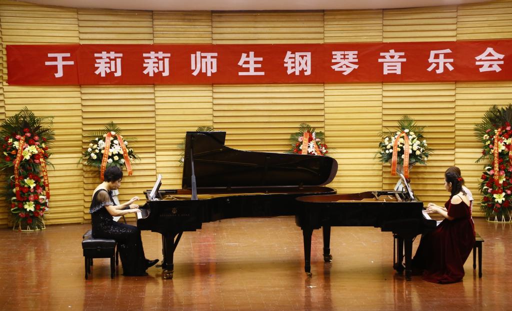 音乐会吸引了来自社会各界的音乐爱好者,现场座无虚席,气氛热烈,掌声不断。音乐会开场是亓轶与姚瑶带来的充满西班牙风情的《卡门》四手联弹,而后是单羽欣演奏的弥漫着俄罗斯民族色彩的《杜姆卡》,尚春晖的《彼特拉克十四行诗》104倾诉着对爱情的渴望与失恋的痛苦,紧接着是陈俊歌演奏的描绘的以化妆舞会为背景的爱情故事《蝴蝶》Op.2。于莉莉与陈家贝两位老师的《D 大调双钢琴奏鸣曲》将音乐会气氛推带高潮。双钢琴演奏考验的不仅是弹奏技巧,更重在演奏者二人的配合,双方旋律相互缠绕,相辅相成。作品开阔明朗的音色与活泼动人的旋律,给观众留下深刻印象。接下来,陈双的《小奏鸣曲》,以一种纯净透明的音色演奏出浪漫主义的消沉与激昂,尚春晖的《英雄波兰舞曲》充满战斗力量与英雄气概,王馨悦的《轻盈》充满温柔飘逸的幻想与令人瞩目的热情。于莉莉老师带领学生们共同弹奏《安达卢西亚双钢琴舞曲》《拉德斯基进行曲》时,集中展现了我校优良的钢琴教学水平和师生精湛的演奏水准。