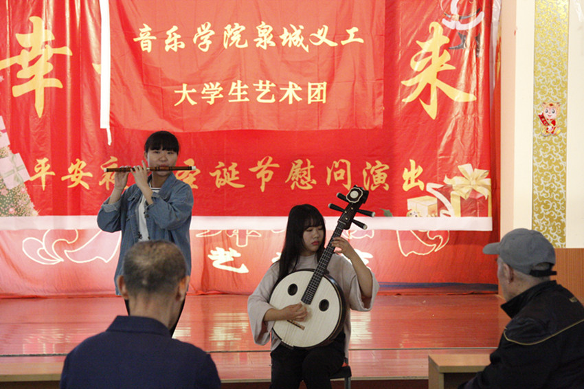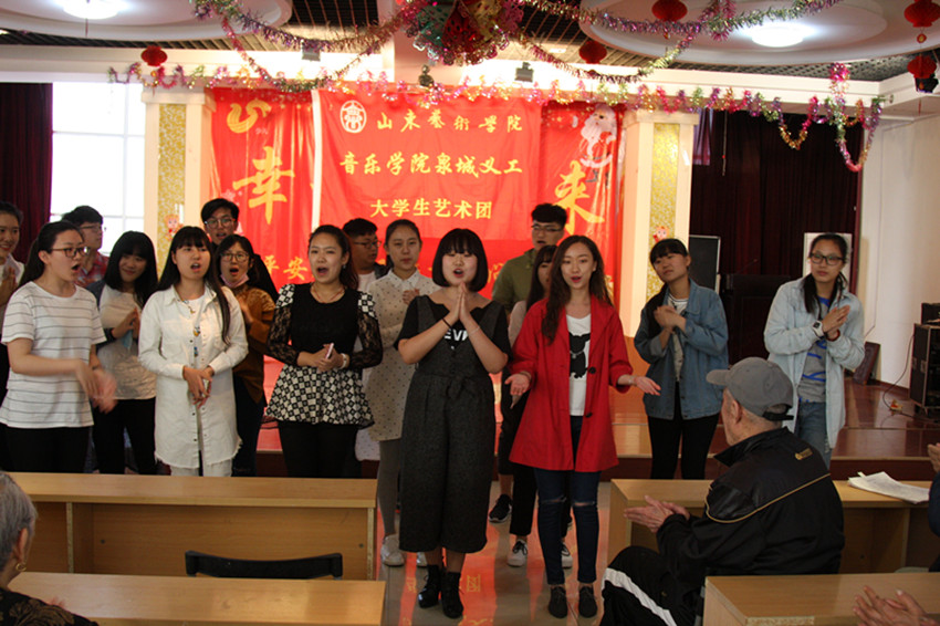 山歌、海笑、花飞扬,莺吟、燕舞、草清香。为学习贯彻习近平总书记系列重要讲话精神,将习近平总书记系列重要讲话内化为青年的精神追求,外化为青年的自觉行动,培养团员青年在大学生中领导思想政治正风向,积极响应校团委在全校团学组织中开展的“两学一做一争”活动的号召,欧冠官方网站“泉城义工”大学生艺术团于4月16日来到了济南市风合家人老年公寓,在红情绿意的春日为老人们带去精彩的节目和真挚的祝福。